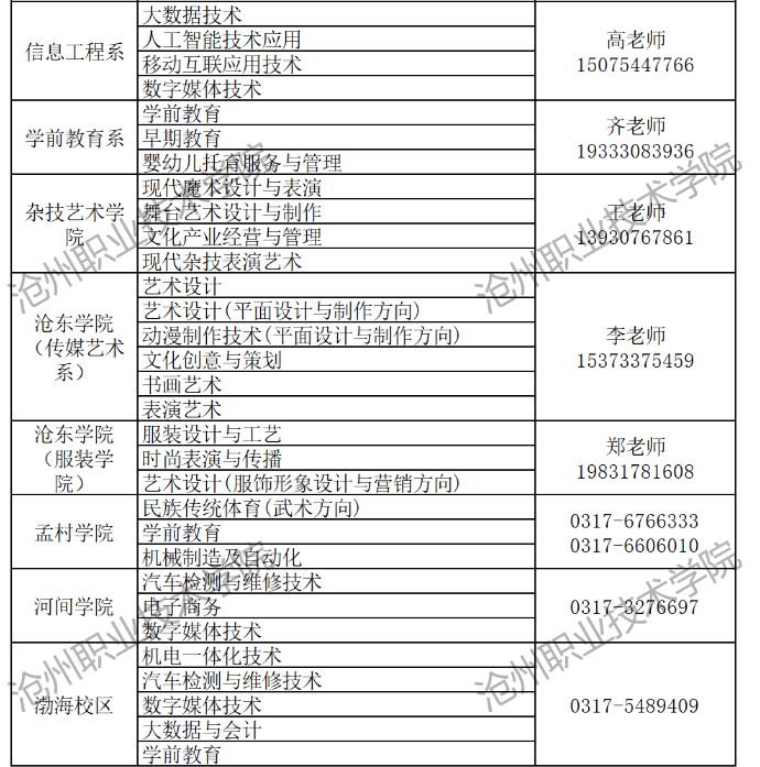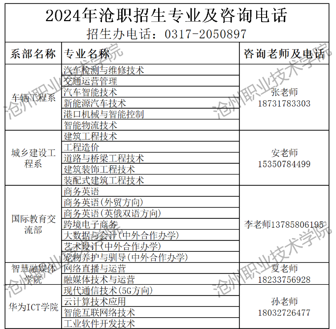 滄州職業(yè)技術(shù)學(xué)院2024年單招招生簡(jiǎn)章,招生咨詢電話:0317-2050897、2128538