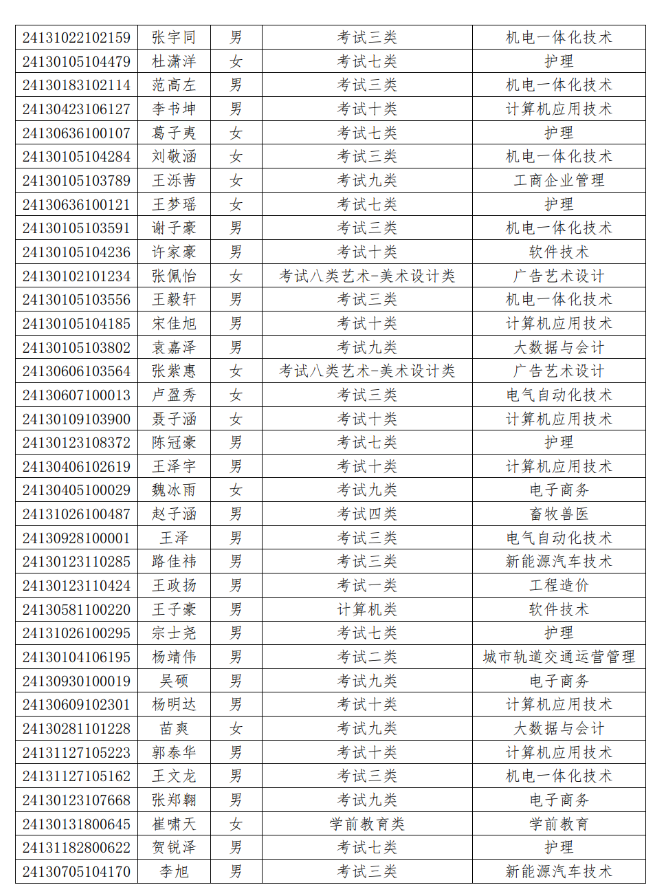 石家莊工程職業學院2024年單獨考試招生免試入學名單公示