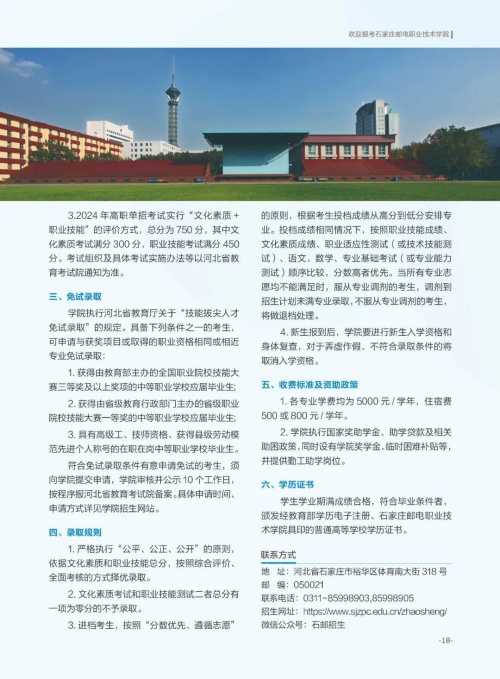 學校名稱:石家莊郵電職業技術學院 2024年單招招生簡章