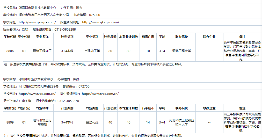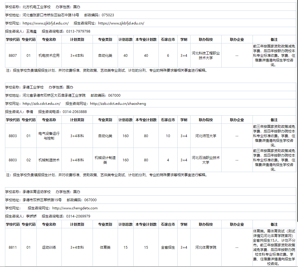 導讀:2024年河北省3+4院校名單及招生專業中考成績一二百分,可以報名咨詢石家莊中專,戴老師17731140655(同微信)...