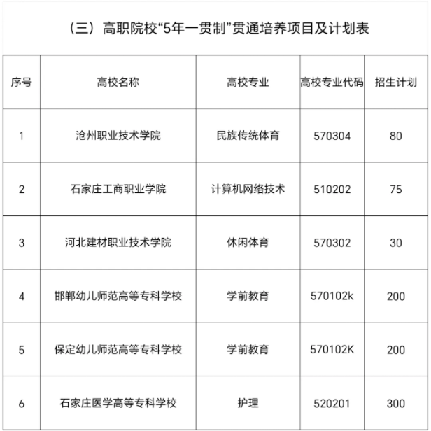 河北省教育廳關(guān)于2025年3+2大專、3+4本科、五年一貫制招生計(jì)劃的公示