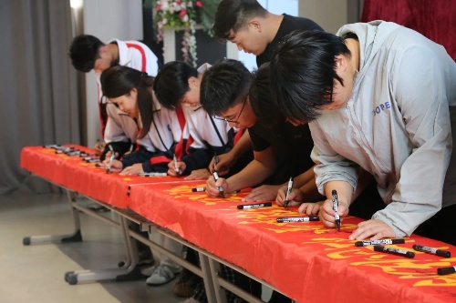 當最后一筆落下,紅色條幅閃耀著“并肩作戰”的力量,密密麻麻的名字匯聚成星河,承載著彩色的夢想,迎著初夏的風,朝著同一個方向奮力前行。