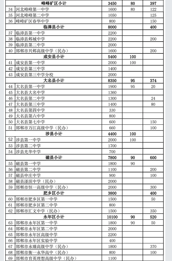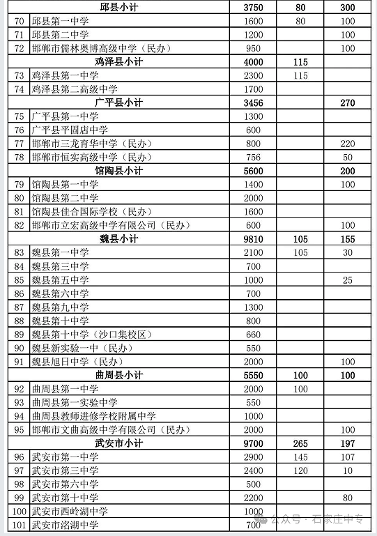 邯鄲教育局公布 邯鄲市2025年普通高中招生計劃(高中招生計劃127856人次)