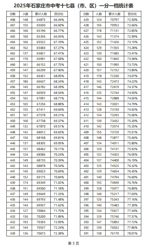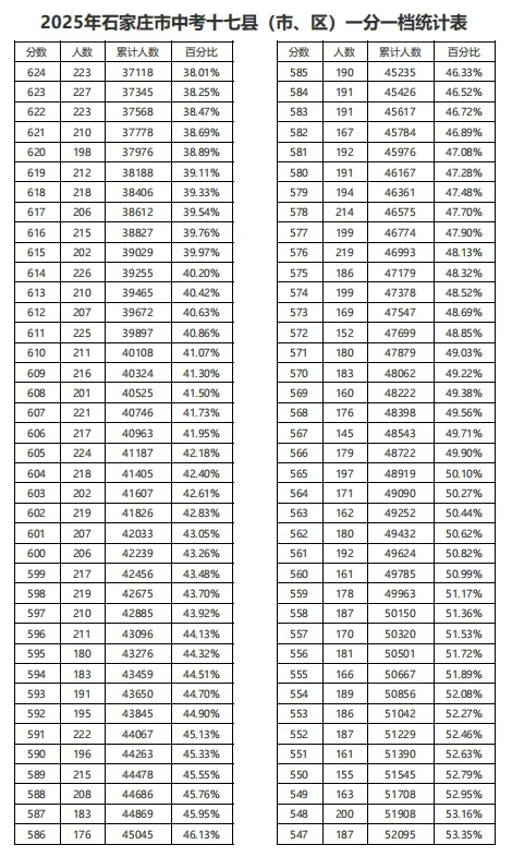剛剛!2025年河北中考分數(shù)線出爐,及石家莊中考一分一檔統(tǒng)計表